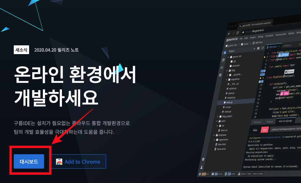 구름 라는 서비스가 IDE외에 EDU 등 다양한 서비스를 하고 있어서 그런지, 로그인 하면 꼭 한단계 화면들 더 거쳐가게 되어 있네요.