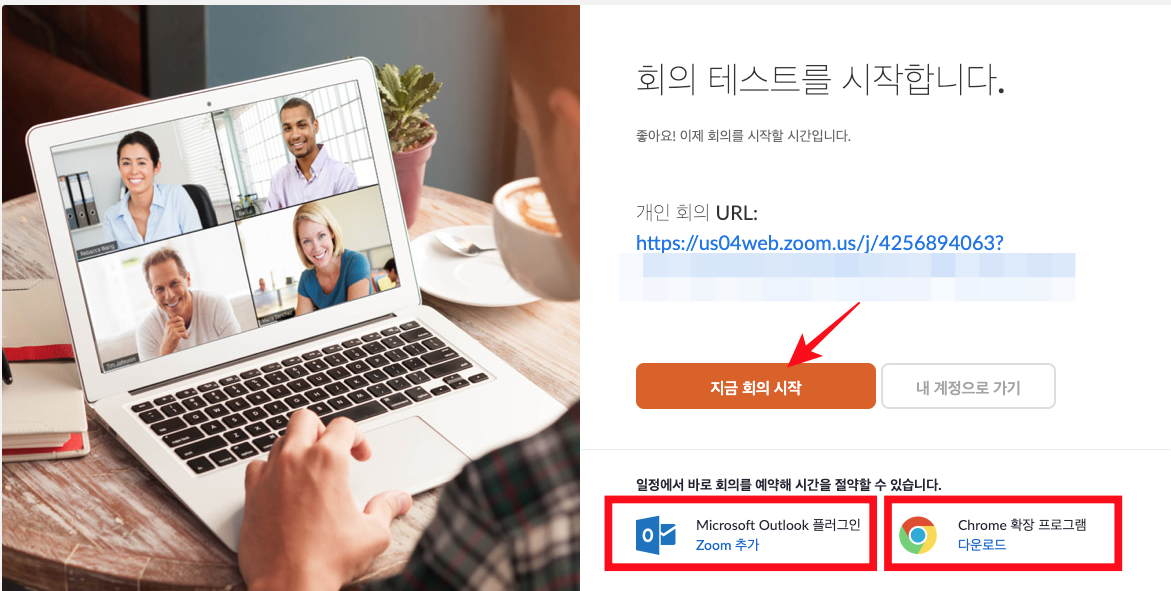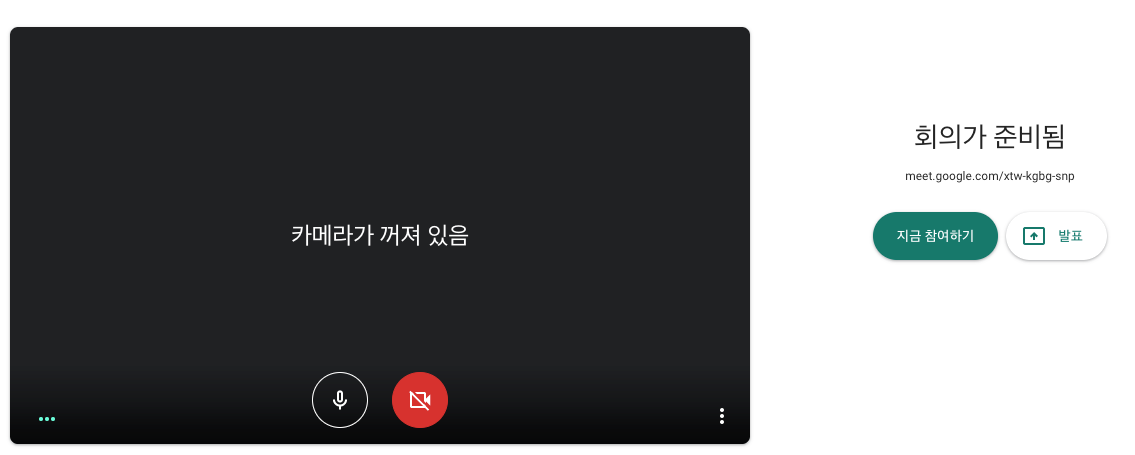 회의를 주관할 때는 위 화면에 표기되어 있는 URL을 공유하면 된다. URL의 뒤에 있는 문자열이 "회의 코드"이다.