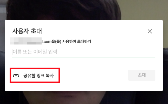 사용자를 초대하기 위해서는, 1) 이메일 계정을 입력하거나, 2) 웹URL 링크를 공유하면 된다.