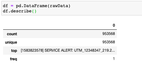 좀 더 경험적인 체감을 위해서, 속도를 측정할 때 필자가 현재 분석중인 데이터를 사용하였다. 문자열로 이루어진 95만개의 데이터셋이다.