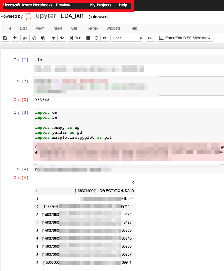 두번째로 사용해본 플랫폼은 MS Azure 환경에서 구동되는 Notebook 이다. 웹페이지 상단에 "Microsoft Azure Notebooks Preview" 검정색 섹션만 제외하면, Jupyter Notebook과 완전히 동일한 환경이다. 매우 친숙하다. 다만, 우리가 주목해야 할 점은 "Preview"라는 부분이다. 서비스 웹페이지를 잘 찾아보면, Preview 버전이므로 아직 개발중에 있는 서비스라는 문구를 발견 할 수 있다.