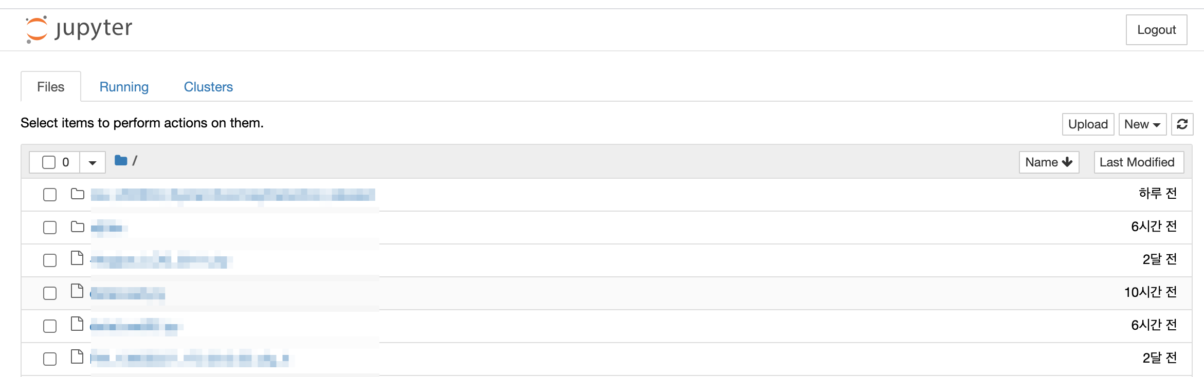 익숙한 Jupyter Notebook 화면을 볼 수 있다. 다음은 로컬서버에서 실행된 결과이다.
