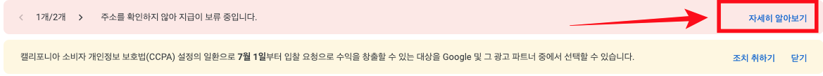 구글 애드센스를 붙여서 블로그를 하다가, 초기에 $1 미만으로 쌓이기 시작한다. 그러다가 어느 단계가 되면, 다음과 같은 메세지를 받게 될것 이다. "청구소 주소"를 확인 하라는 것이다. 청구소 주소가 확인 되기 전까지, 애드센스의 수익은 사용자에게 실제로 전달되지 않는다. 청구소 주소가 확인이 되어야 "지급 방법"을 지정할 수 있다.