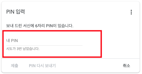 즉, PIN 확인 카드에서 "확인" 버튼을 누르는 방법밖에 없다는 이야기다.