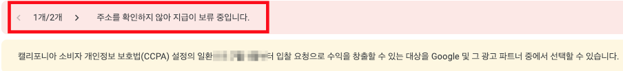 구글 애드센스를 붙여서 블로그를 하다가, 초기에 $1 미만으로 쌓이기 시작한다. 그러다가 어느 단계가 되면, 다음과 같은 메세지를 받게 될것 이다. "청구소 주소"를 확인 하라는 것이다. 청구소 주소가 확인 되기 전까지, 애드센스의 수익은 사용자에게 실제로 전달되지 않는다. 청구소 주소가 확인이 되어야 "지급 방법"을 지정할 수 있다.