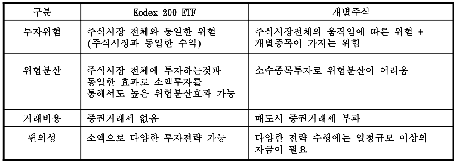 앞서 ETF가 무엇인지 간략히 소개하였다. 앞에서 소개한 ETF 방식으로 거래하면 무엇이 좋을까? 무엇은 좋지 않을 수 있을지 알아야 자기자신과 상황에 맞는 투자가 가능할 것이다.