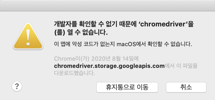 저는 크롬 웹드라이버 공식 사이트에서 다운로드 하고, Hash를 확인을 하였기 때문에 안전하다고 판단하고 설치를 진행합니다.