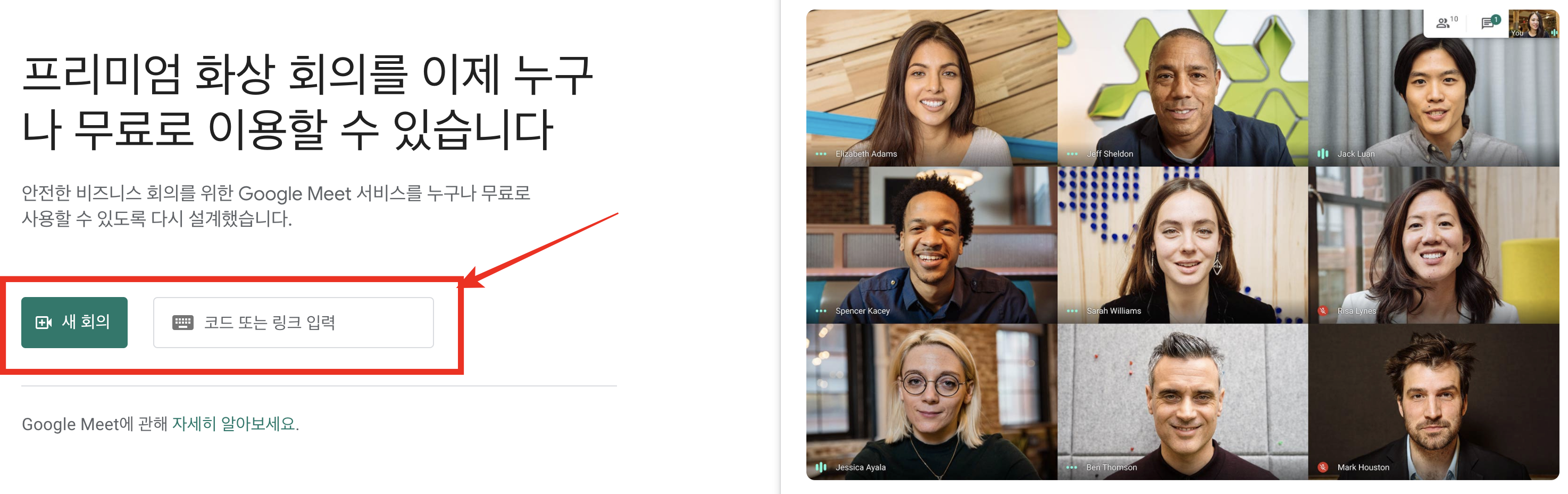 본인이 회의 주최자라면, 새 회의 버튼을 눌러 주면 됩니다.