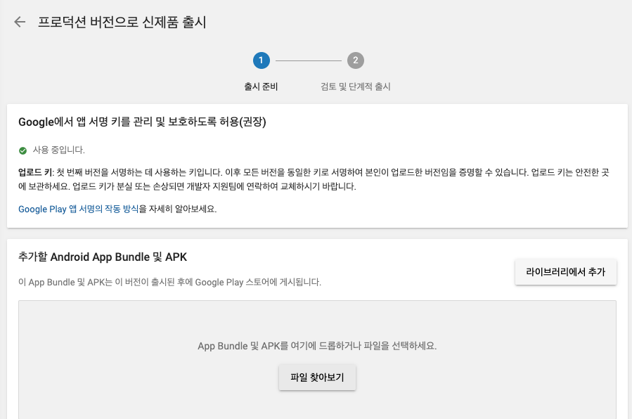 다음화면에 번들 파일이나 APK 파일을 드래그하여 업로드를 진행할 수 있다.