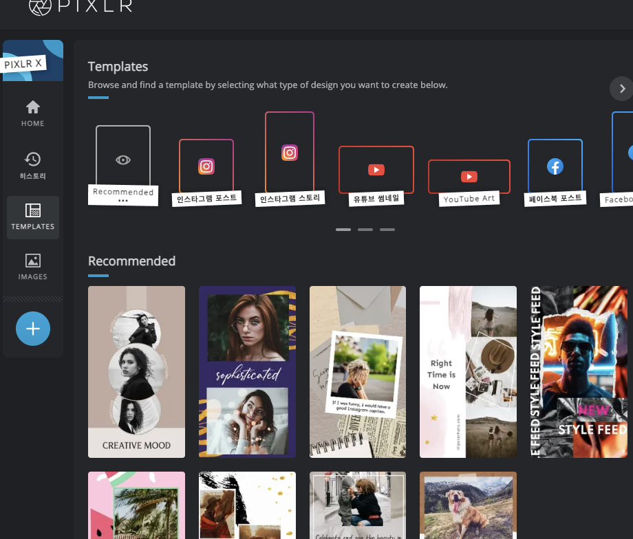 PIXLR는 기본적으로 온라인 포토샵과 같은 기능을 대표 서비스로 하고 있다. 그러나, 확장된 서비스로 템플릿을 기반으로하는 디자인 에디터 도한 제공하고 있다. 해외 서비스로써, 망고보드와 미리캔버스가 카툰 분위기 중심의 템플릿이라며, Pixlr는 사진 및 실사 분위기의 템플릿 중심으로 볼 수 있다.