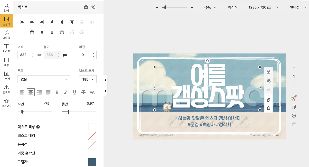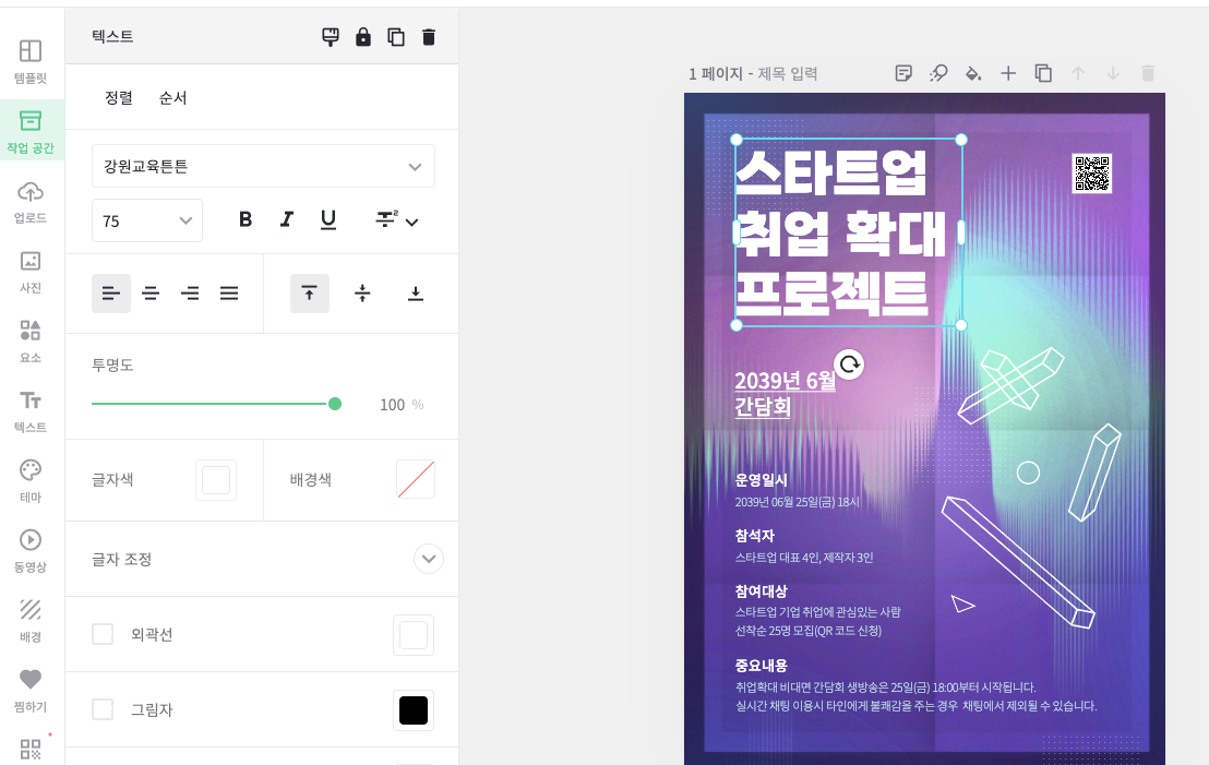 다음은 웹브라우저에서 단순 몇번의 클릭만으로 생성할 수 있는 이미지 포스터 이다.