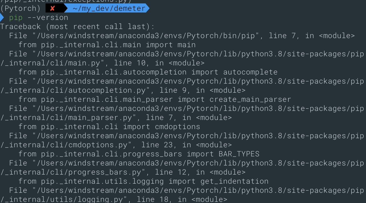 File "/Users/windstream/anaconda3/envs/Pytorch/lib/python3.8/site-packages/pip/_internal/cli/main.py", line 10, in <module>