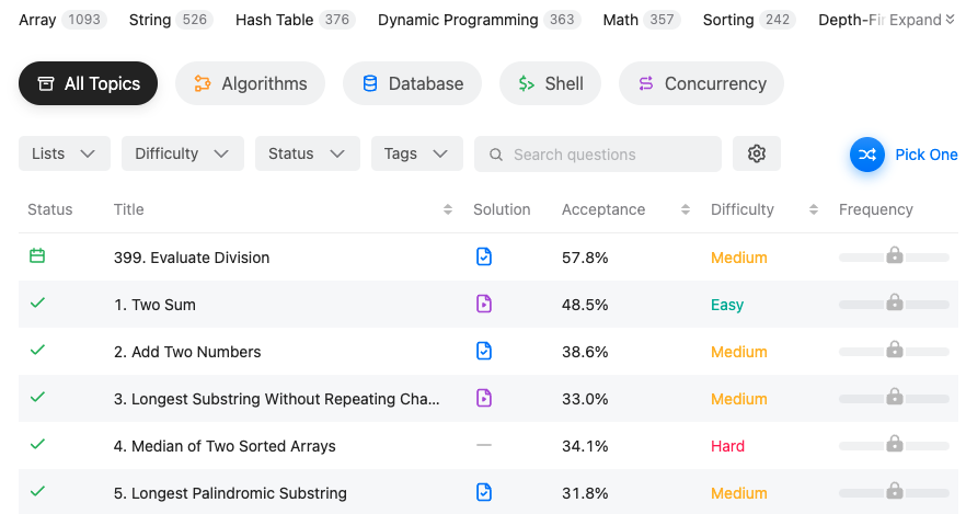 글로벌 가장 많은 개발자가 활용하는 플랫폼이라고 볼 수 있는, 코딩테스트/알고리즘의 종합세트라고 할 수 있다. 거의 모든 개발자가 알고있는 플랫폼이다. 난이도가 Easy, Medium, Hard 3종으로 구분되어 있으며, 다른 코딩테스트에서도 난이도 수준을 이야기 할 때 "리트코드 기준 Medium" 등으로 표현한다.
