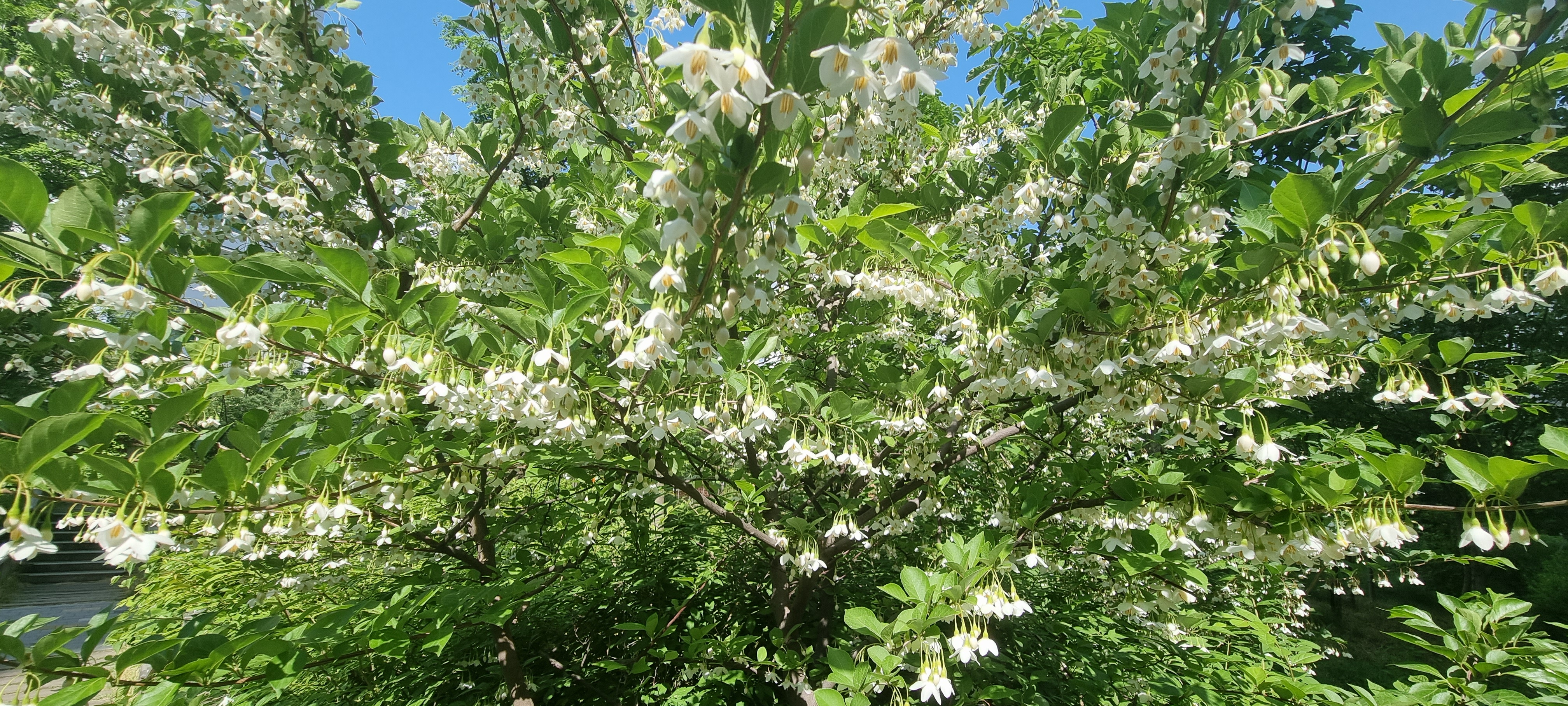 아래는 산책중, 향기가 좋은 꽃을 직접 찍은 사진. 검색해 보니 "때죽나무" 라고 함.