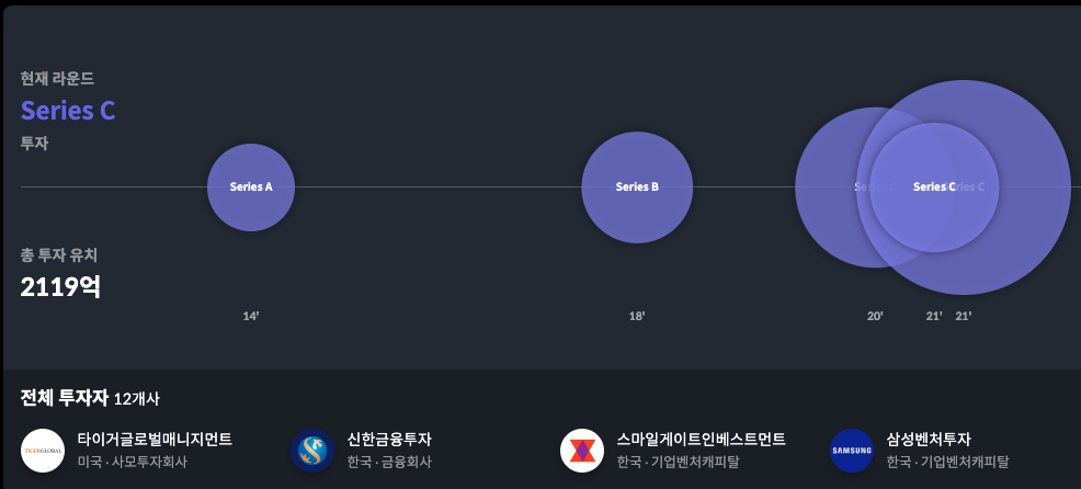 또한, 아래와 같이 현재 투자규모로 볼 때, Series C 투자를 받았고, 현재 총 투자유지 2119억이라고 한다. (22.5월 기준). 투자사들 또한 메이져 투자사로 멀지 않은 미래에 엑싯을 할 수 있을 것으로 기대 된다. 따라서, 현 시점에서 몰로코에 조인하게 되면 가장 짧은 시간에 가장 효율적인 직무와 투자 효과까지 얻을 수 있다는 판단이 섰다.