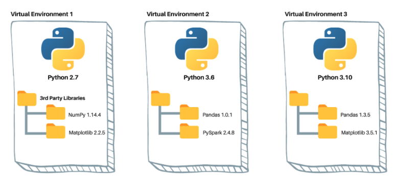 가상환경은 python의 명령어 및 설정정보를 다른 디렉토리에 설치/복사/생성해 둔 묶음이다. 그리고, 이후에 가상환경으로 변경하면 기본 root_dir을 가상환경의 디렉토리도 임시 변경해 둔것이다. 즉, 추가적인 python version과 하위에 설치된 라이브러리들을 설치해 두고, 시스템에게 python의 기본 실행위치를 속여서 처음부터 python이 이 환경이라고 OS를 인식시키는 것이다. (docker/container도 이와 비슷한 개념에서 출발 했다.)