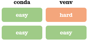 그러나, conda를 지원하지 않는 경우도 다수 존재하며, conda에서는 설치할 수 없는 패키지들도 존재하기 때문에 가급적, venv와 다음에서 설명할 virtualenv도 함께 숙지해 두면 좋을 것이다.