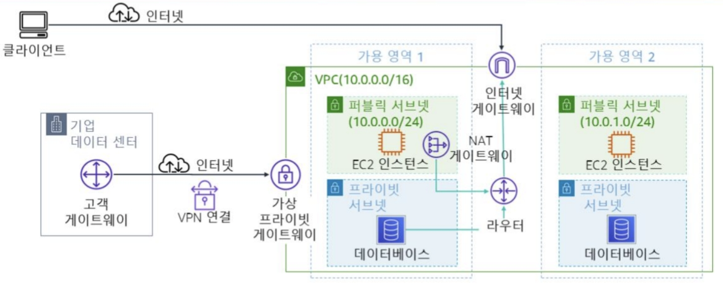 기존 온프레미스 데이터센터와 전용선을 연결하듯이 연동은 어떻게 하는가? 가상 프라이빗 게이트웨이(VGW)를 만들고 VPC에 연결, 가상 프라이빗 게이트웨이와 데이터센터의 게이트웨이를 VPN으로 연결.