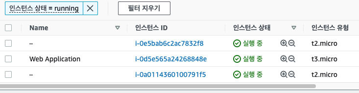 초기 상태. Web Applicaiton용 EC2 인스턴스가 1개 구동되어 있음.구동중인 Web Application에는 Admin Tool로써 Stress Testing 기능이 포함되어 있음. 기능 동작 시 10분동안 CPU 부하를 줌CPU 부하를 몇분 가하고 난 다음 다시 EC2 인스턴스를 살펴보면, 인스턴스가 3개로 늘어나 있음을 확인 할 수 있다. Name Field에 "-"로 표현된것이 증가된 인스턴스 이다.