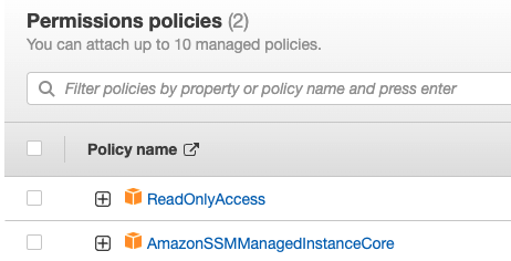 IAM Role : "notes-application-role"에 부여된 권한(permission)은 ReadOnlyAccess와 SSM(?)에 대한 권한만 존재함을 알 수 있다.