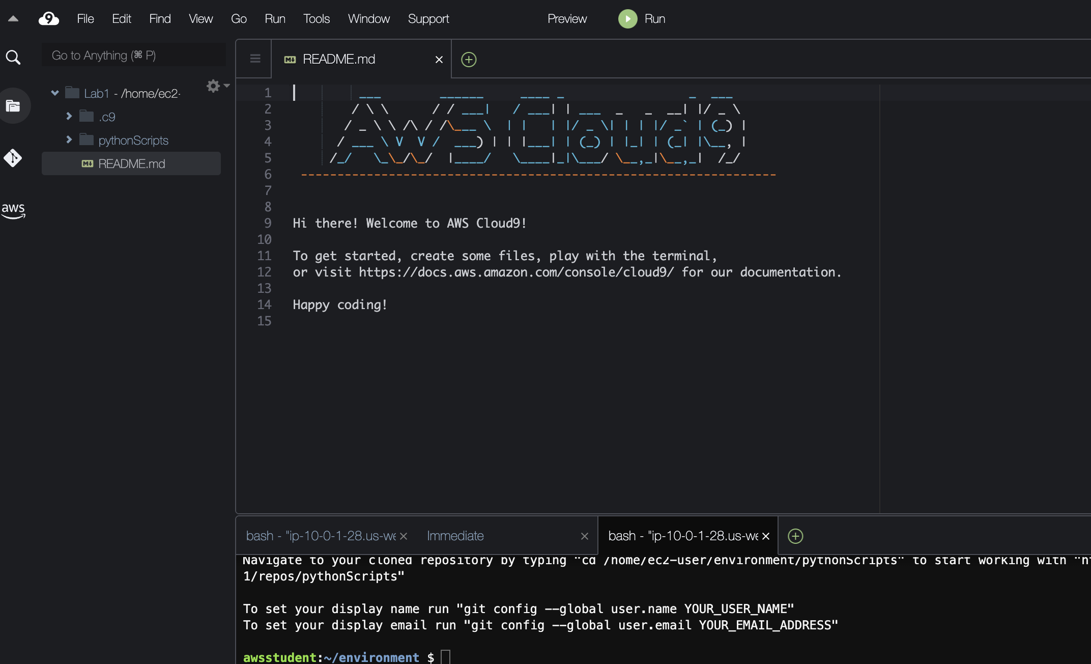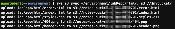 aws s3 sync ~/environment/labRepo/html/. s3://$mybucket/