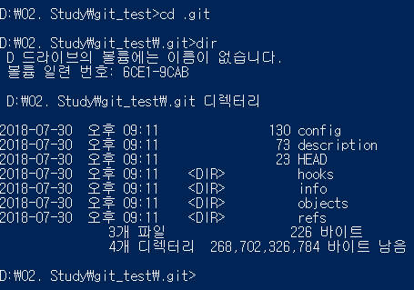 생성된 “.git” 디렉터리 내부에 들어가 보면,