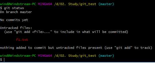이것은, 현재 디렉터리 범위에서 git이 버전관리를 하는데, f1.txt는 관리하고 있지 않는다는 것입니다. (시야에는 들어오나 관리 대상은 아니다…)