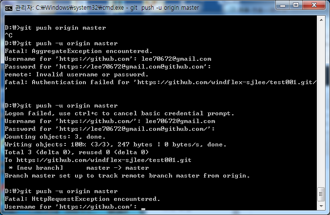windows에서 “git push -u origin master “를 실행할 때,