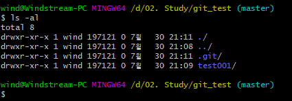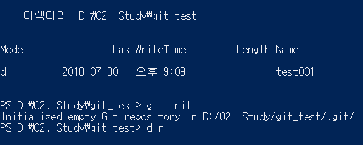 ⇒ 버전 관리 대상으로 가서, git init 실행하면, “ .git “ 이라는 디렉터리가 생성 된다.
