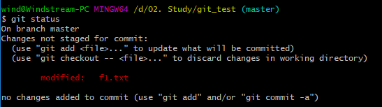 그리고 git status 로 다시 확인하면, f1.txt 파일에 신규 관리대상으로 추가된것을 알 수 있습니다.