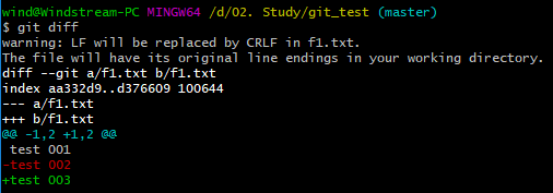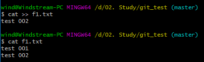 이번에는, 기존 f1.txt를 내용을 변경해 본다. ( “test 002”라는 내용을 추가 하였다. )