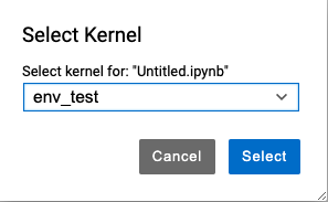 따라서, JupyterLab 혹은 Jupyter Notebook UI에서 이제 "env_test"라는 이름의 커널/가상환경을 선택할 수 있다.