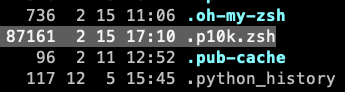 설정 위자드가 완료되면, 홈 디렉터리 밑에 아래와 같은 ".p10k.zsh" 폴더가 생성된다. (자꾸 뭐가 추가되네....)
