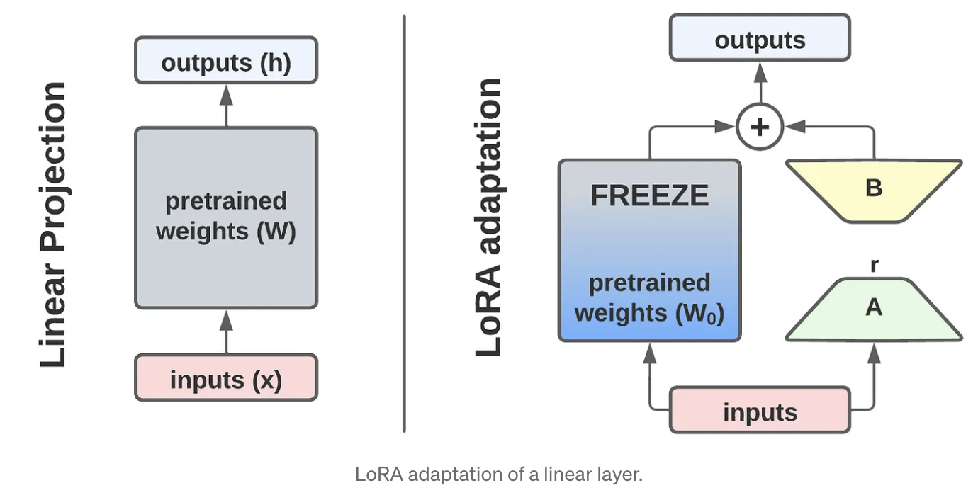 [참조] https://medium.com/@alexmriggio/lora-low-rank-adaptation-from-scratch-code-and-theory-f31509106650