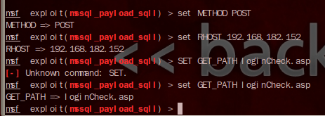 예제) Microsoft SQL Server Payload Execution (mssql_payload_sqli)