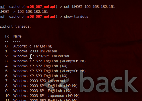 ㅇ backtrack : 192.168.182.151 (Attacker)