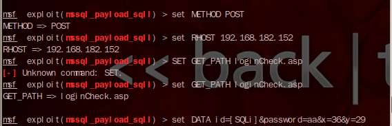 예제) Microsoft SQL Server Payload Execution (mssql_payload_sqli)