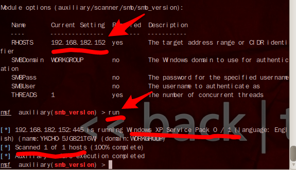 SMB 버전 및 취약점이 있는지 확인하는 module을 실행한다.