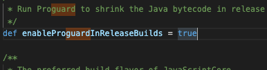 minifyEnabled, proguard, shrinkResources 등을 기능을 사용하도록 설정해 놓을 것을 확인 할 수 있다.