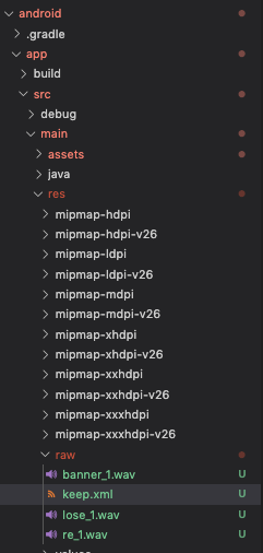 "android/app/src/main/res/raw/" 위치에 keep.xml 파일을 만들고, 다음과 같은 내용을 작성/저장한다.