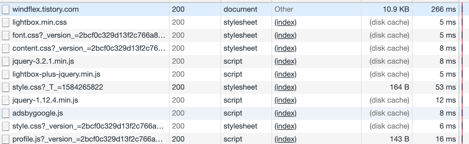 역시나 방문 시점에 adsbygoogle.js가 구동되고, 이것을 기점으로 다른 구글 서비스에서 받아오는 2차 스크립트들이 구동 됩니다.