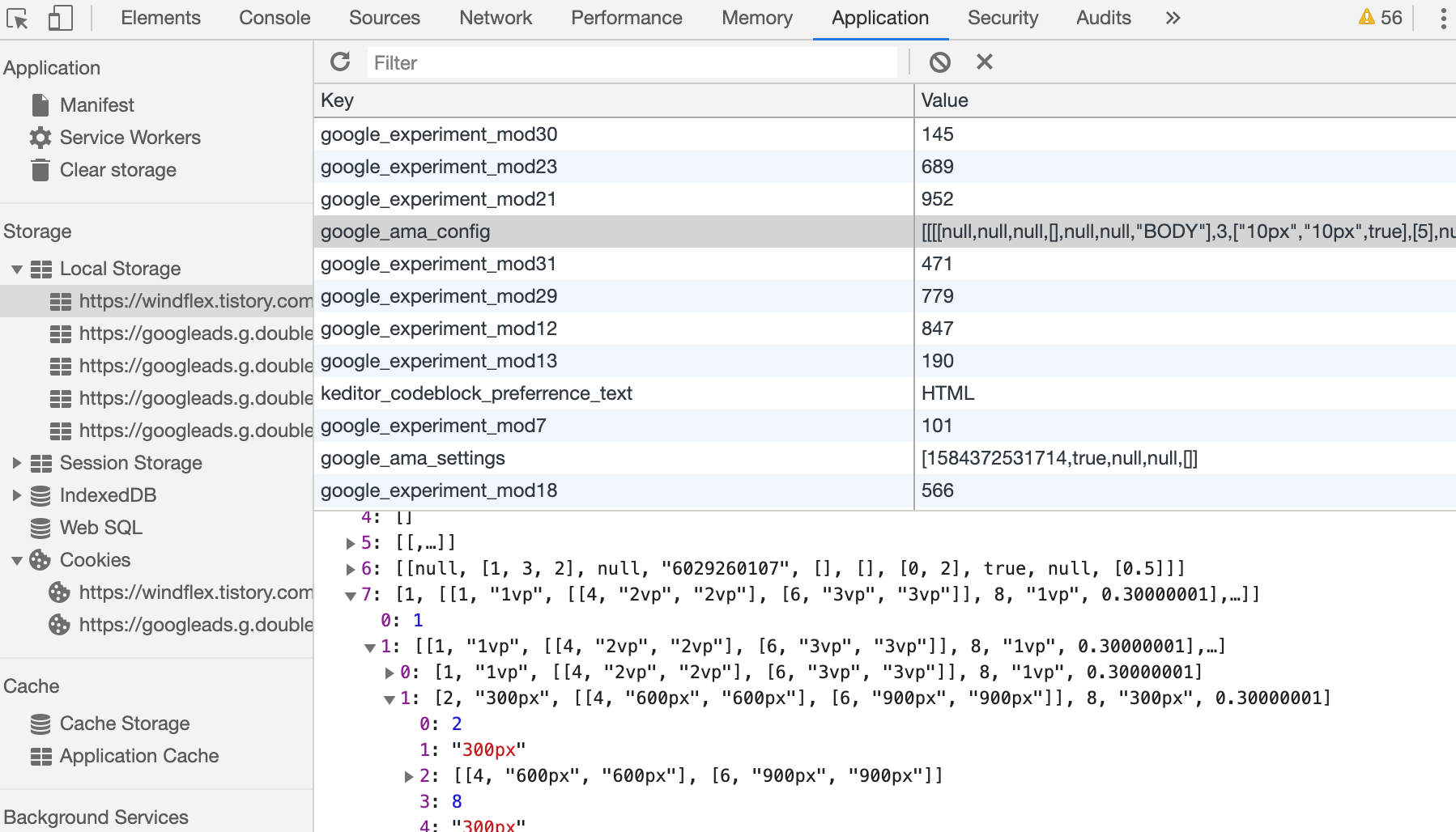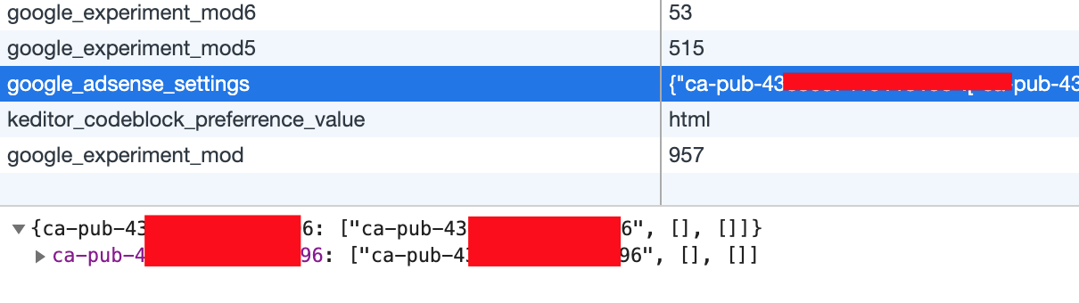 실제 Local Storage DB에 저장된 google_adsense_settings 정보를 찾아보니, 광고 APP ID가 시간 정보에 따라 저장되어 있는 것을 볼 수 있습니다. 이 정보로 동일사용자가 동일 광고 대상으로 접근 여부와, 시간 정보를 모두 확보할 수 있을 것 입니다.