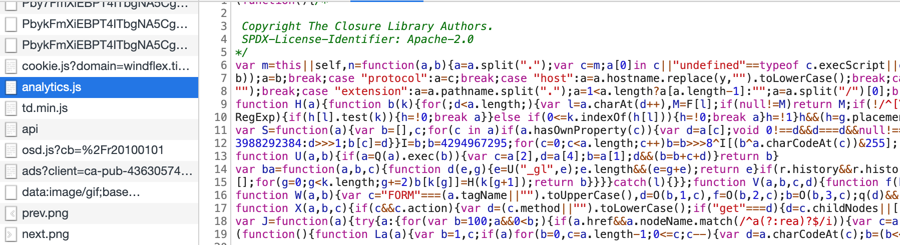 역시나 방문 시점에 adsbygoogle.js가 구동되고, 이것을 기점으로 다른 구글 서비스에서 받아오는 2차 스크립트들이 구동 됩니다.
