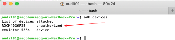 adb로 연결을 되었으나, 권한이 없다고 합니다.