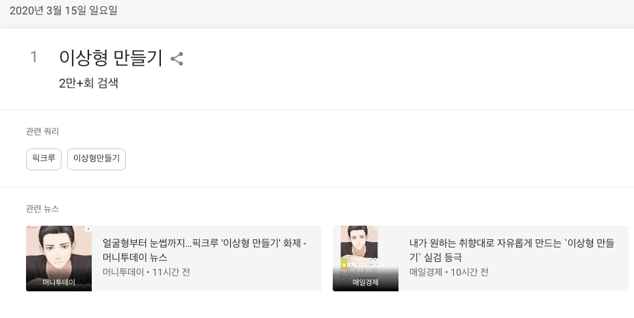 아래는 어제일자 핫트랜드 입니다. 인기 검색어 1위가 "이상형 만들기" 라고 하네요.. ^^;;;;;