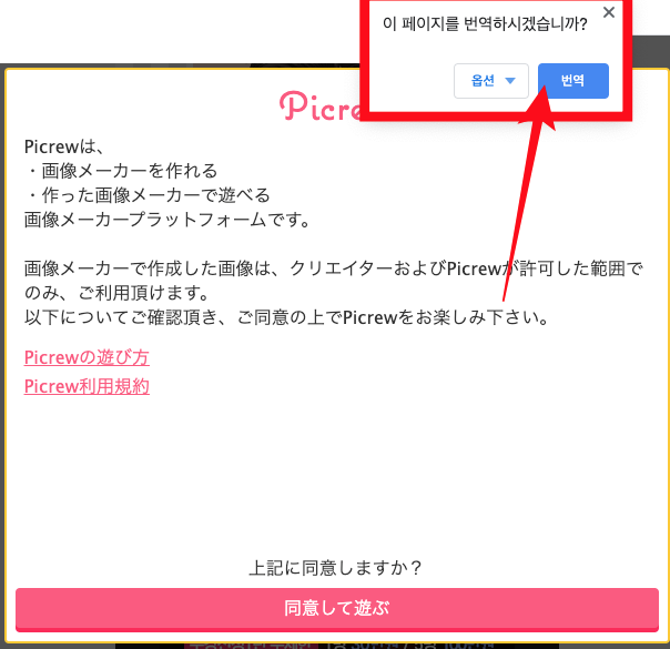 번역 창이 뜨지 않으면, 브라우저에서 마우스 우측버튼 클릭하여, 한국어로 번역 이라는 항목을 눌러 줍시다.