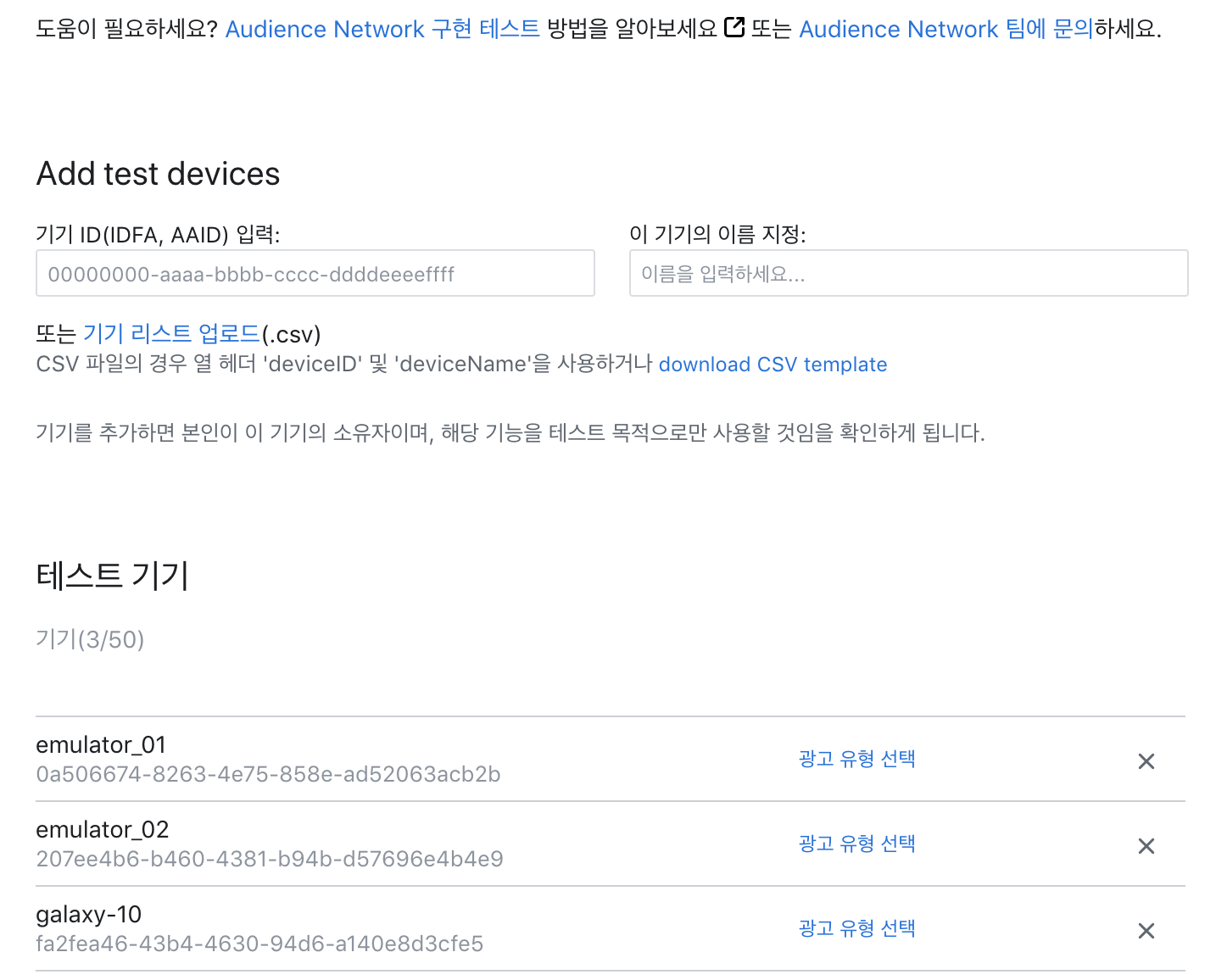- Test Device ID 설정 (필요하면)