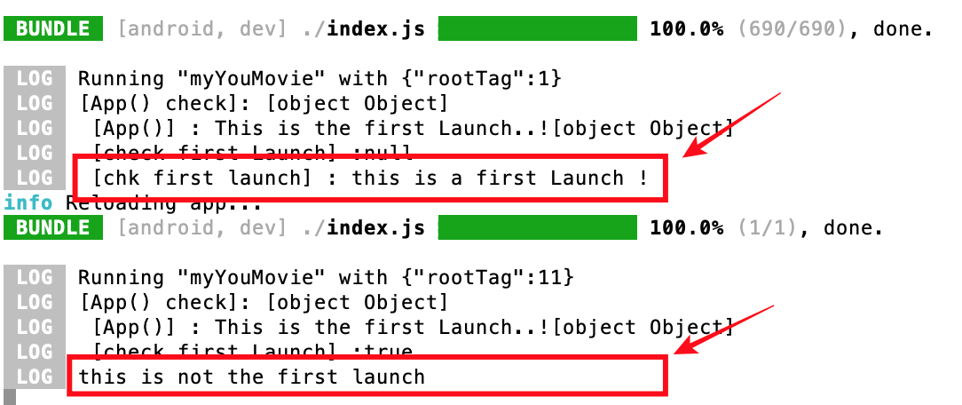 console.log( ' [App()] : This is the first Launch..!'+ isFirstLaunch.toString() );
