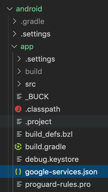 다운로드 받는 google-services.json 파일을 웹사이트의 가이드에 따라 android/app/google-services.json 에 위치하도록 저장 합니다.