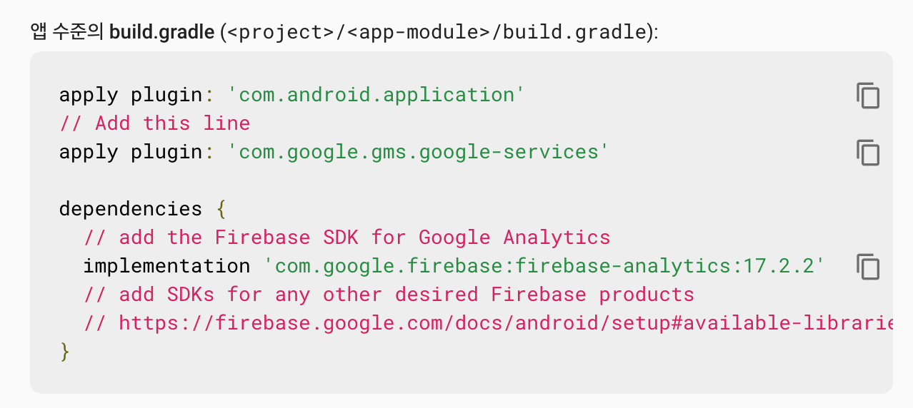 저는 프로젝트를 시작할 때 기본적으로 위와 같은 동일 세팅을 하고, google-services.json만 변경 하여 사용합니다.